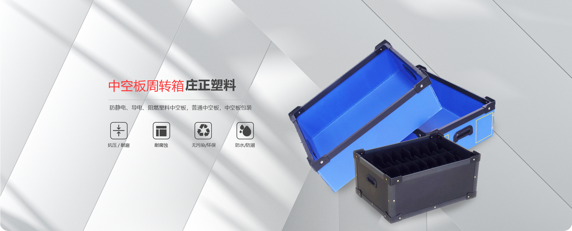 威海莊正塑料中空板有限公司是一家專注于圍板箱產(chǎn)品和中空板產(chǎn)品研究、開發(fā)、生產(chǎn)及銷售的高科技企業(yè)。我司專業(yè)生產(chǎn)銷售圍板箱、防靜電、導(dǎo)電、阻燃塑料中空板,普通中空板,中空板包裝等。是一家及研發(fā)、設(shè)計(jì)、生產(chǎn)、銷售一體化的專業(yè)制造商。產(chǎn)品具有質(zhì)輕、防潮、耐油污、抗腐蝕、無毒、無污染顏色豐富的新型環(huán)保產(chǎn)品。 主要產(chǎn)品:圍板箱、普通塑料中空板,防靜電、導(dǎo)電塑料中空板,中空板周轉(zhuǎn)箱,中空板包裝箱,中空板墊板,中空板托盤、塑料包裝制品等系列產(chǎn)品。
